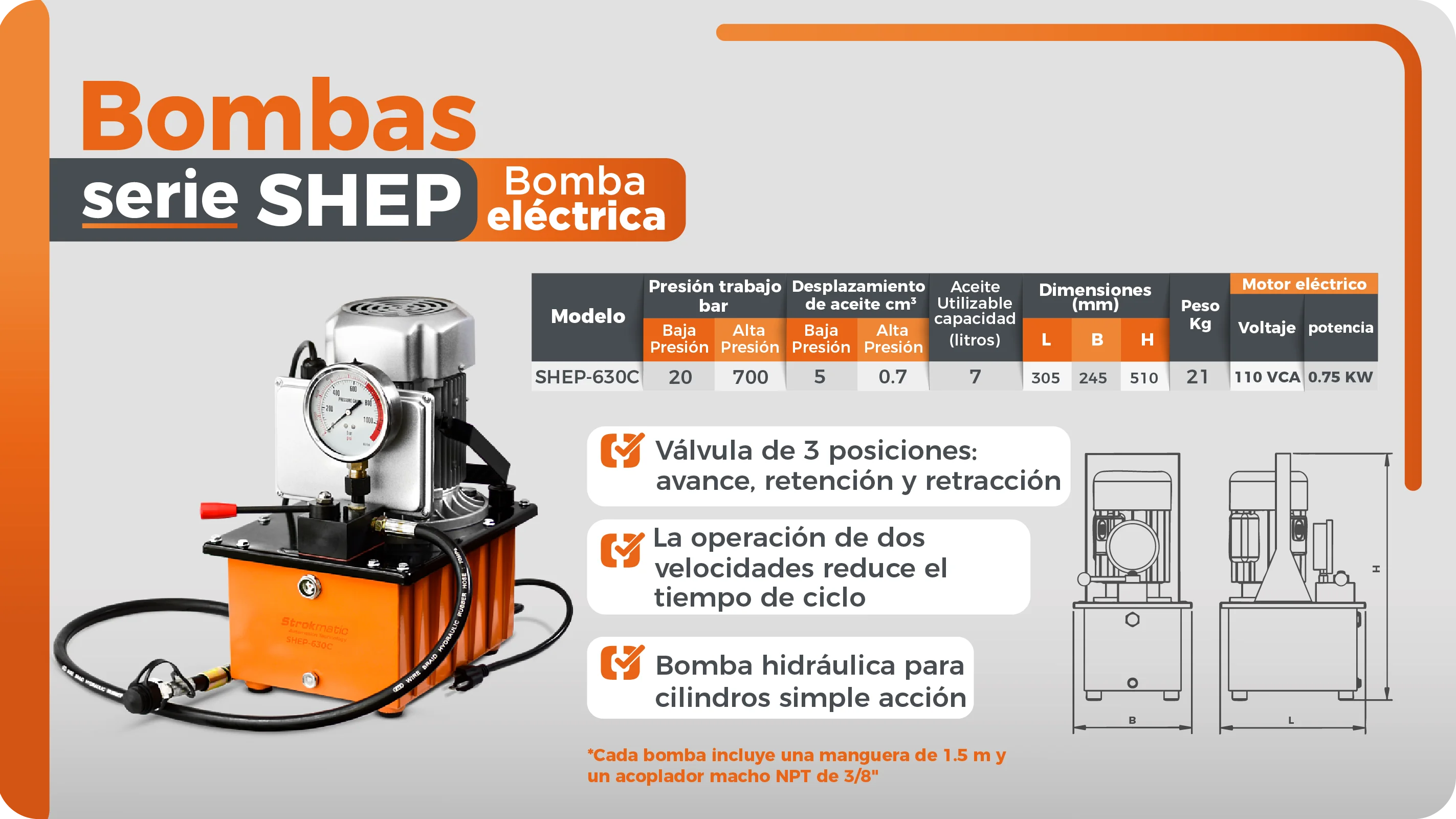 Conjunto hidráulico de 10 toneladas