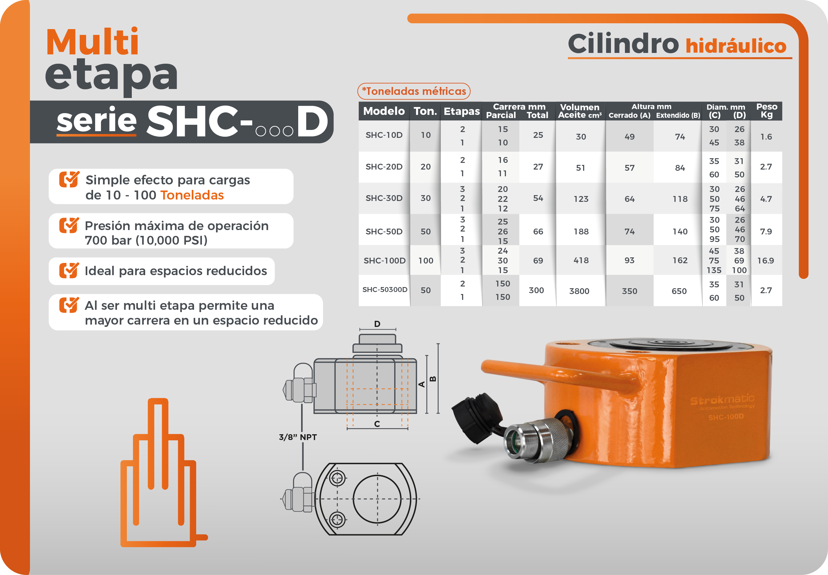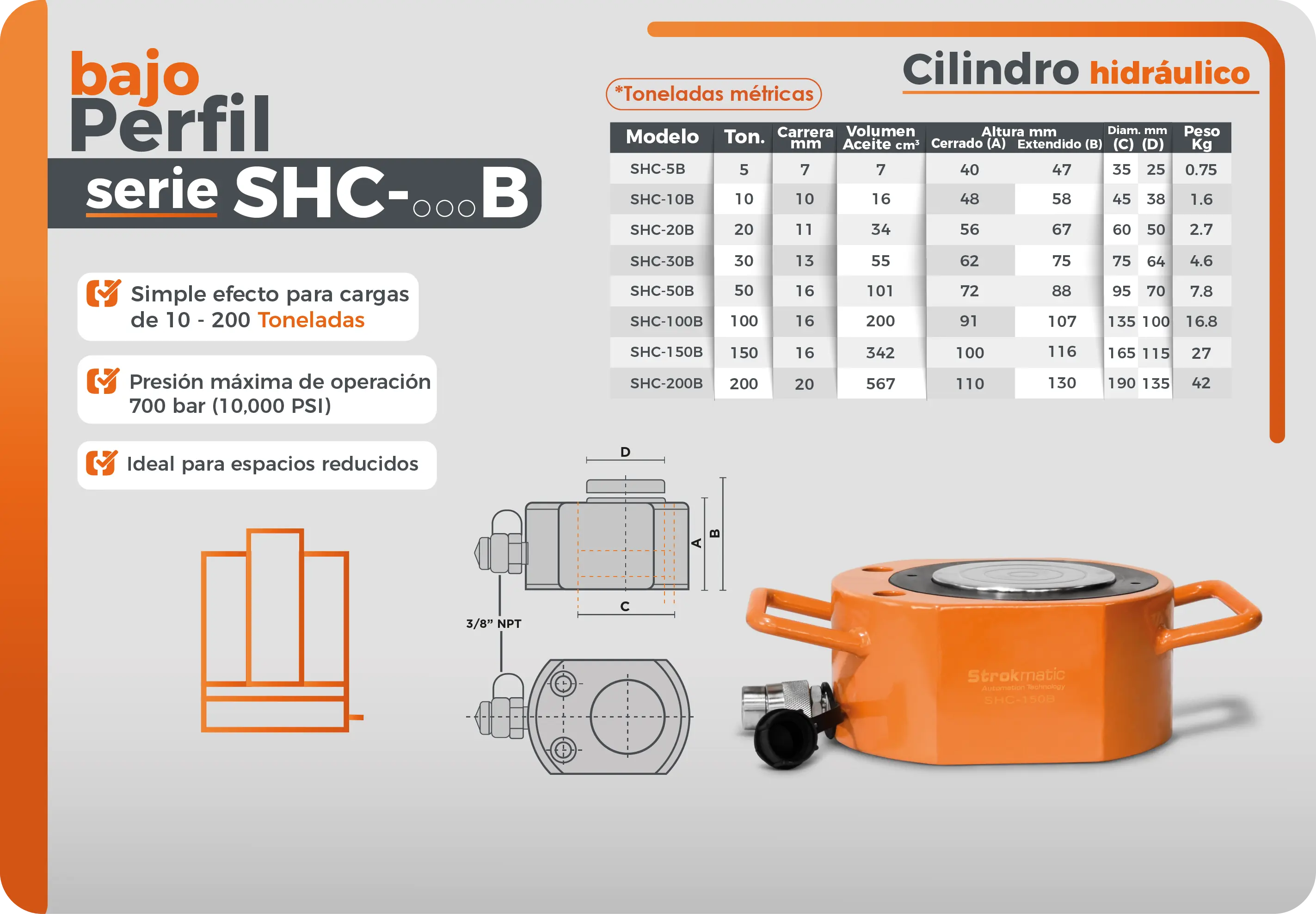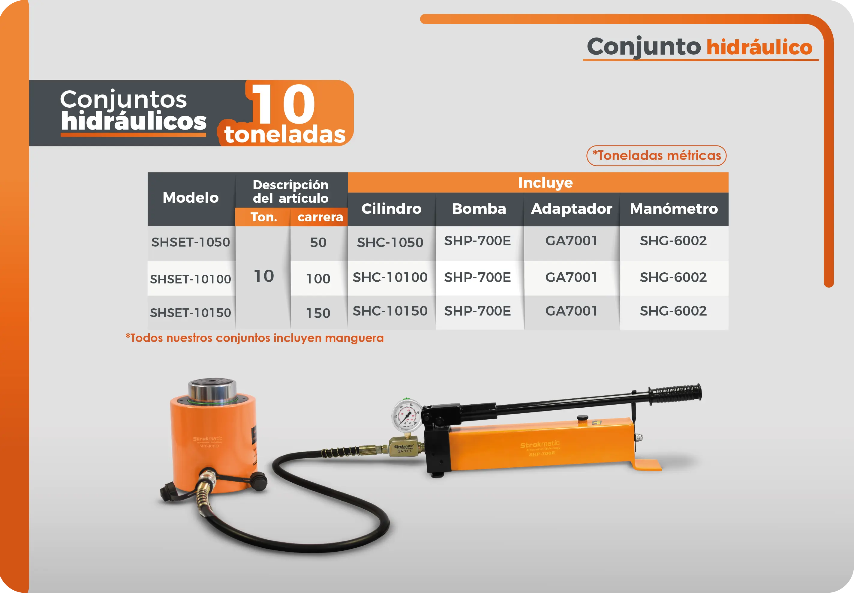 Conjunto hidráulico de 10 toneladas