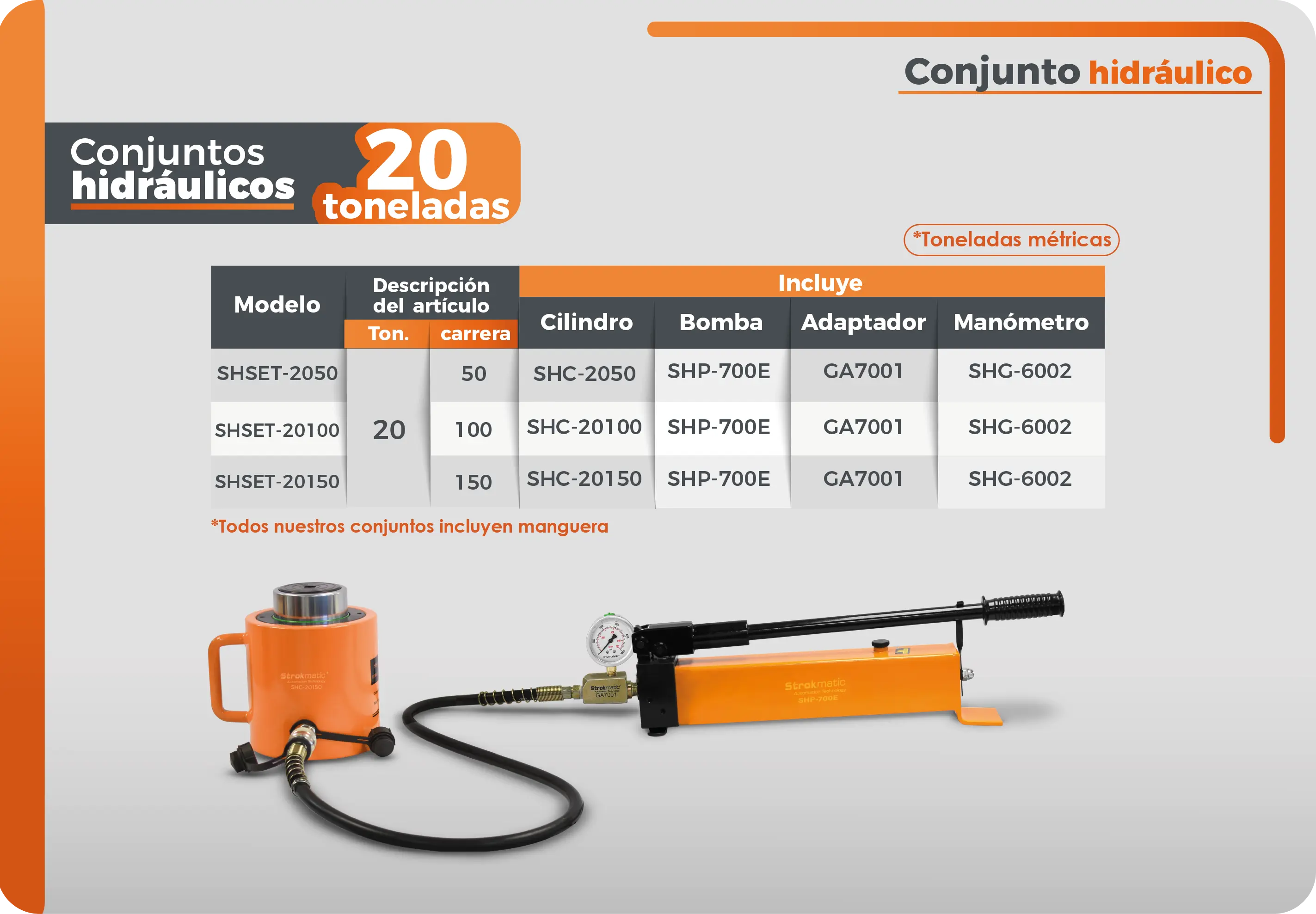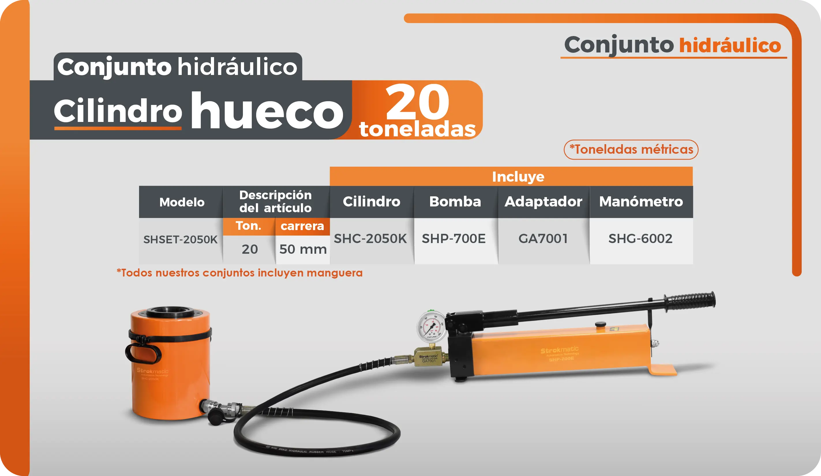 Conjunto hidráulico de 20 toneladas