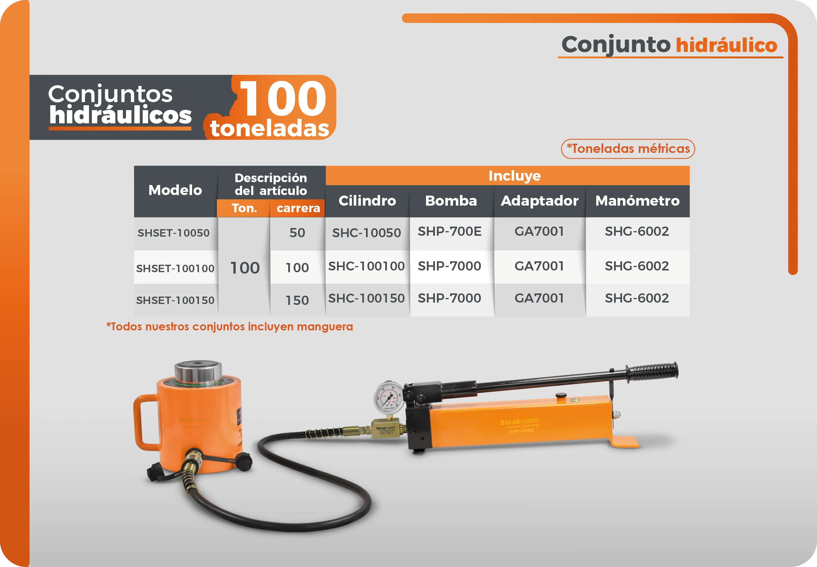 Conjunto hidráulico de 100 toneladas