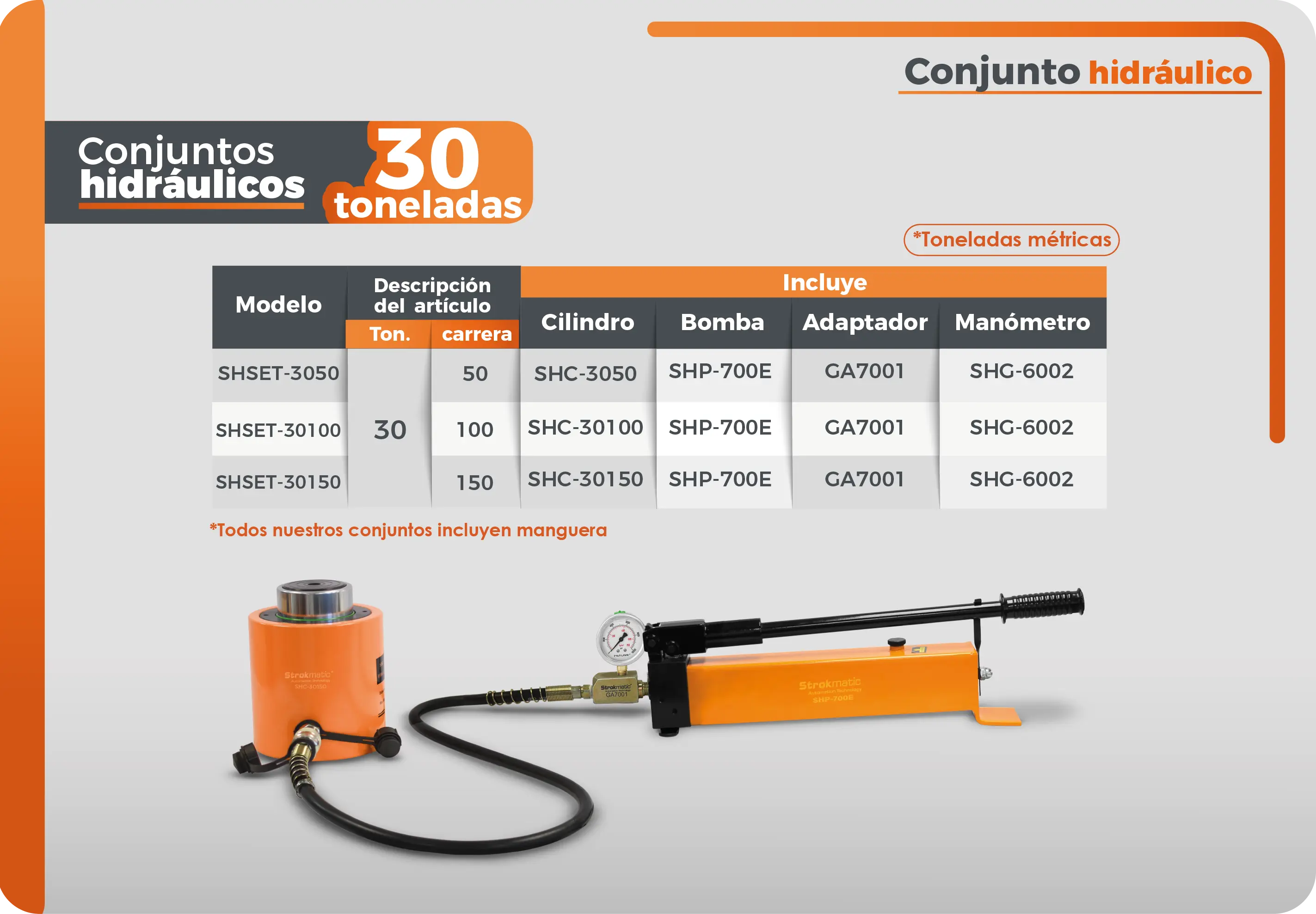Conjunto hidráulico de 30 toneladas