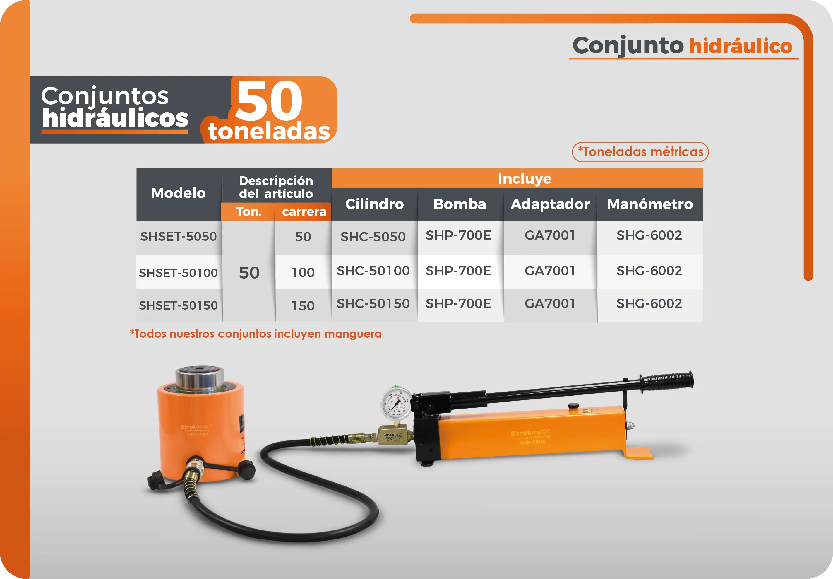 Conjunto hidráulico de 50 toneladas